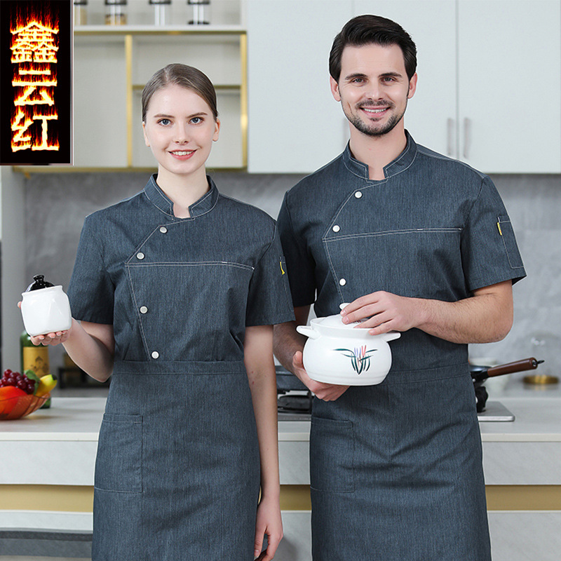 Toko Kopi restoran Barat pelayan baju kerja lengan pendek musim panas toko kue toko roti steak toko kemeja staf Pria