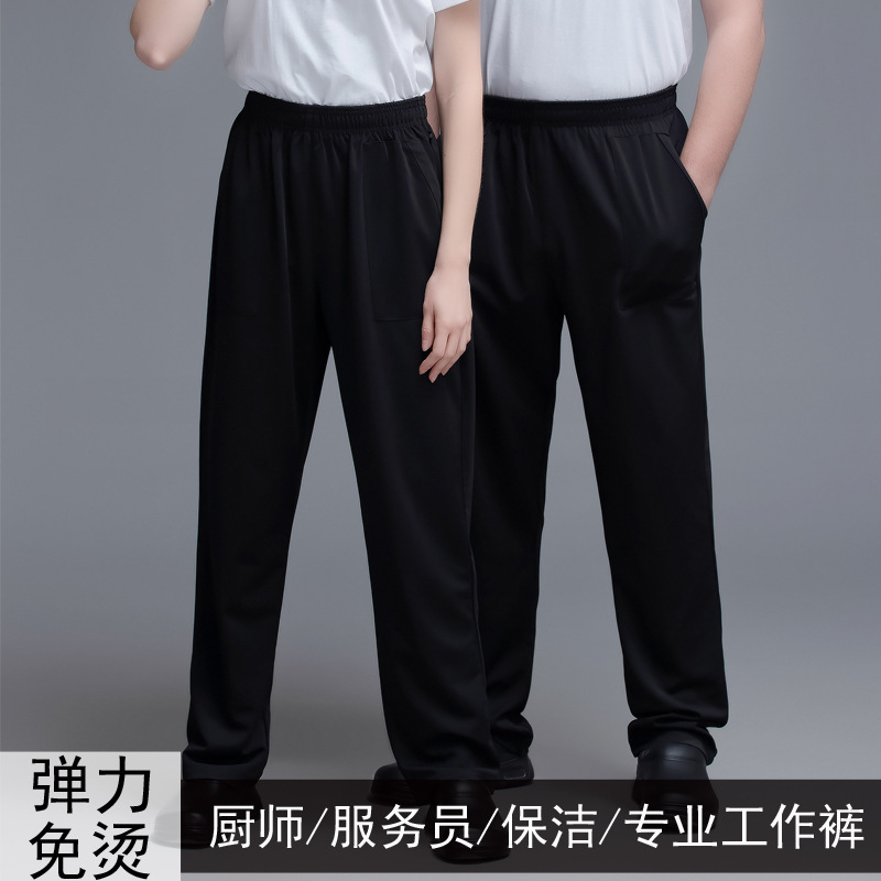 Celana kerja koki pelayan restoran, celana Pembersih elastis kasual Denim kurus restoran katering pelayan hotel
