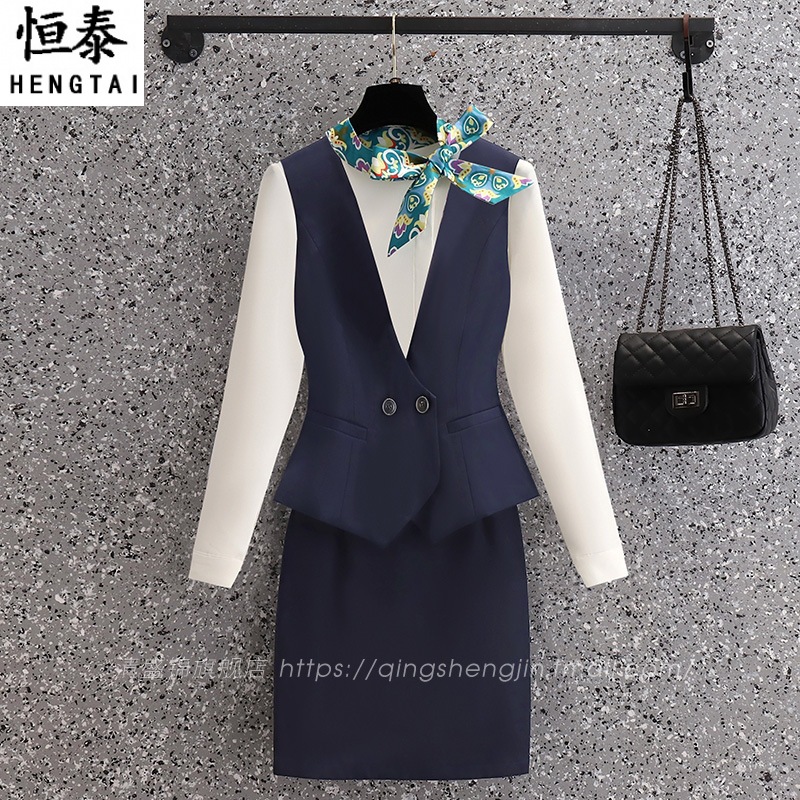 Setelan rompi profesional 2021 baju kerja wanita pelayan hotel musim semi dan musim gugur baju kerja wanita salon kecantikan depan meja pakaian kerja