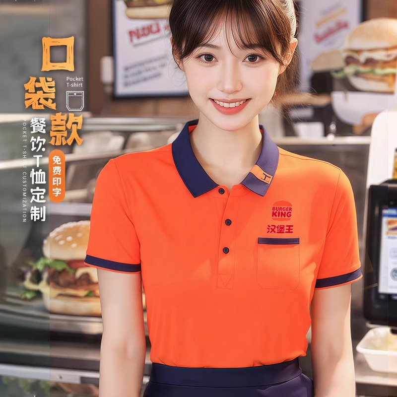 Pakaian Kerja Katering Model Saku T-shirt Makanan Cepat Saji Burger Hot Pot Teh Susu Barbekyu Pelayan Musim Panas Lengan Pendek Wanita