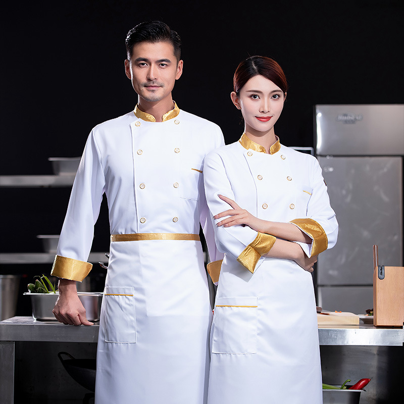 Pakaian kerja pelayan hotel, kelas atas lengan panjang musim gugur dan musim dingin dipertebal pria dan wanita restoran cina pot panas restoran pakaian katering