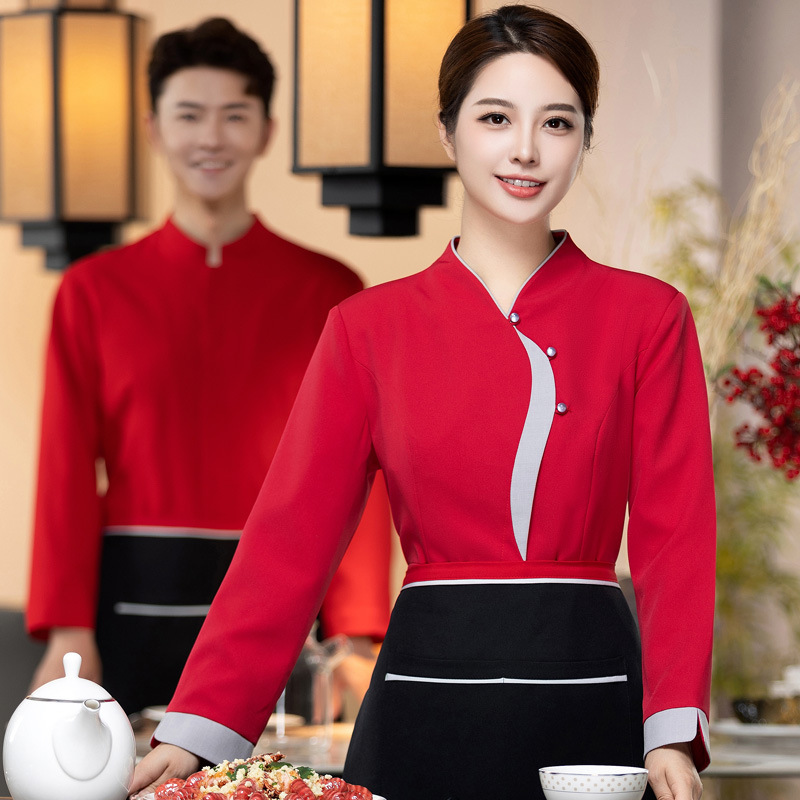 Pelayan baju kerja lengan panjang musim gugur dan musim dingin pakaian hotel china rumah teh katering musim panas pot panas restoran pria dan wanita lengan panjang