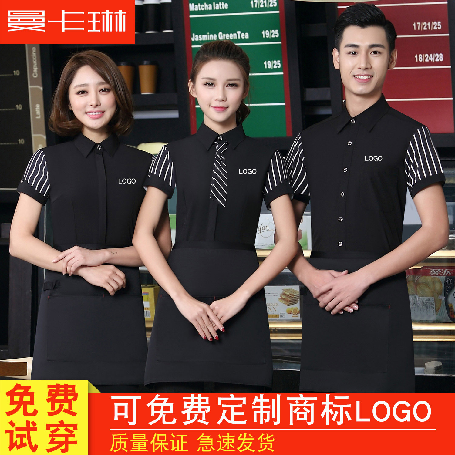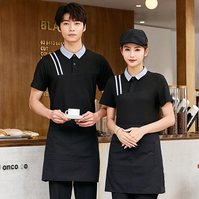 Baju kerja katering musim panas, baju kerja pelayan restoran Cina, toko teh susu, baju kerja toko makanan segar lengan pendek