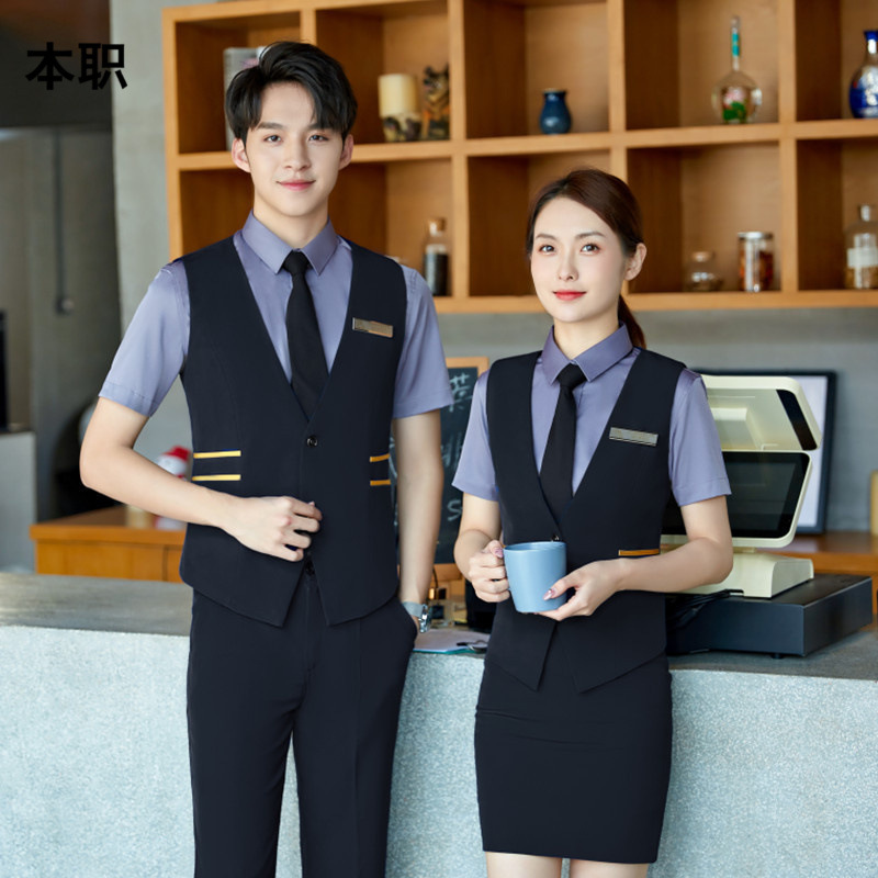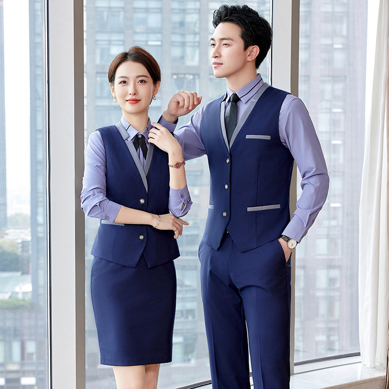 Pakaian kerja Kelas Atas hotel meja depan pelayan katering, setelan rompi profesional, pakaian kerja ahli kecantikan pria dan wanita