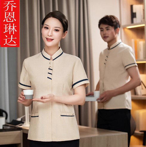Pakaian kerja kustom lengan pendek pembersih pria dan wanita PA Hotel kamar pramugari musim panas bibi pembersih
