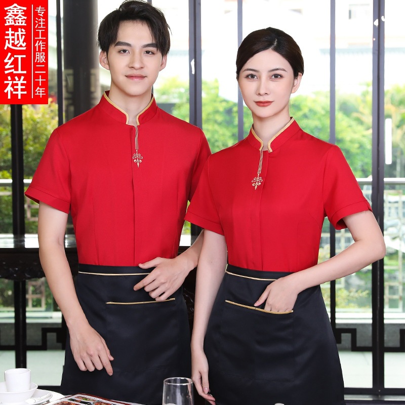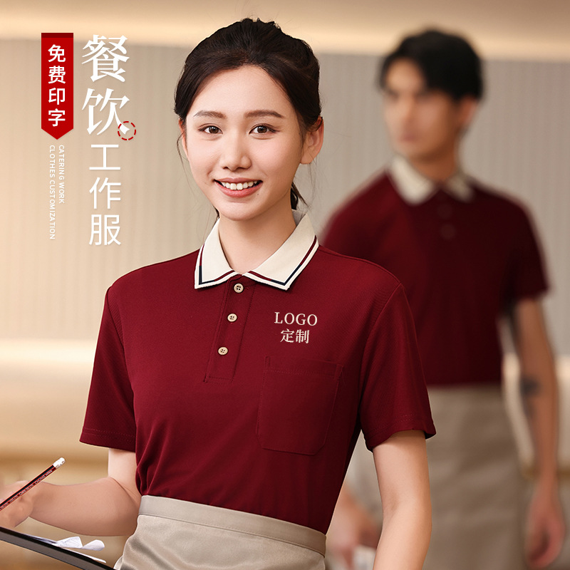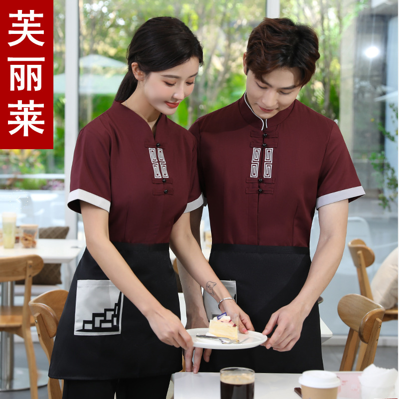 Pakaian Kerja Pelayan Musim Panas T-shirt Makan Teh Restoran Teh Susu Toko Susu Toko Hot Pot Supermarket Pakaian Kerja Hotel Lengan Pendek Bernapas