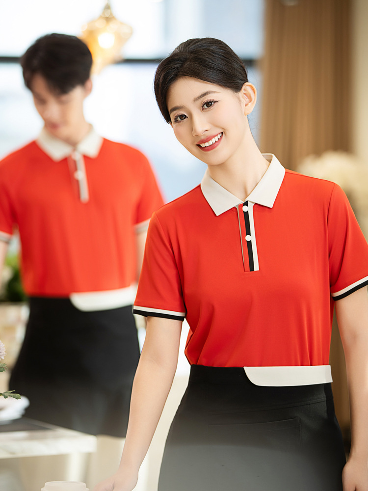Pakaian Kerja Pelayan Restoran Setelan Wanita Hotel Katering Musim Panas Lengan Pendek Restoran Restoran Hot Pot Pakaian Kerja Bordir Logo