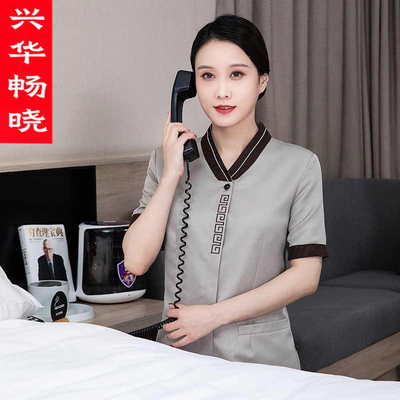 Pakaian kerja pembersih kamar wanita lengan pendek pakaian musim panas Hotel pelayan Hotel Properti pembersih bibi setelan musim panas