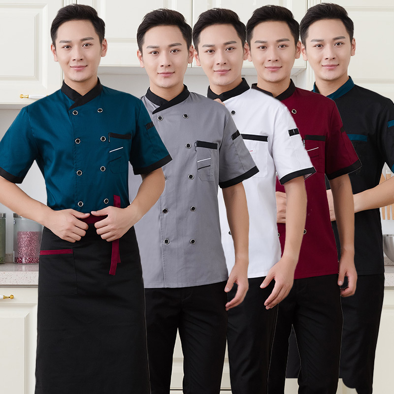 Baju kerja koki lengan panjang pria dan wanita, pakaian kerja dapur hotel pot panas pelayan restoran lengan pendek