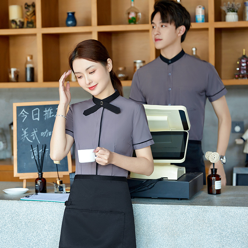 Pelayan Hotel 2023 pakaian kerja musim panas wanita lengan pendek catering restoran pria dan wanita musim panas menyerap kelembaban pakaian kerja mengumpulkan