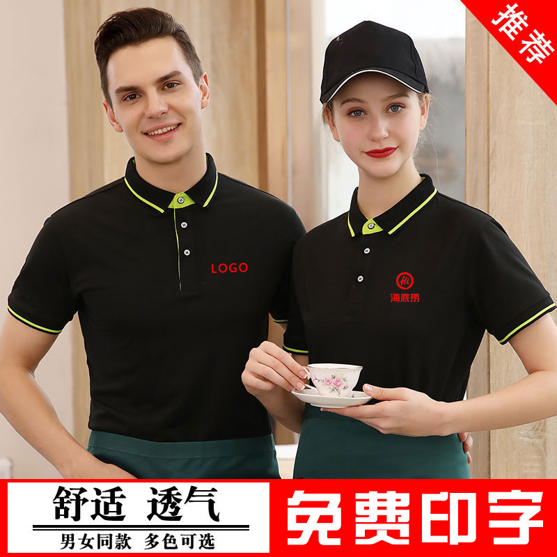 Pelayan baju kerja katun lengan pendek musim panas T-shirt makan restoran hot pot barbekyu restoran pakaian kerja logo