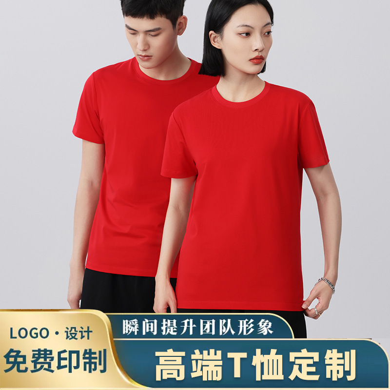 Pakaian kerja pelayan restoran barbekyu musim panas T-shirt katun leher bulat diy lengan setengah Cetak Pria Grup logo wanita