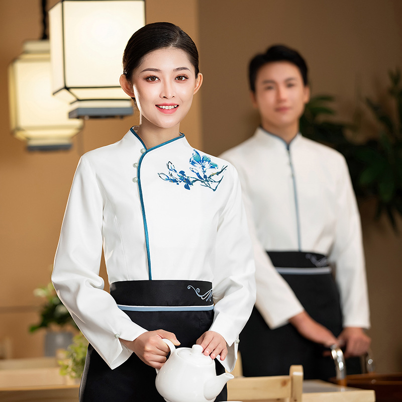 Pakaian kerja pelayan hotel, kelas atas lengan panjang musim gugur dan musim dingin pakaian fashion restoran katering pot panas pakaian rumah teh