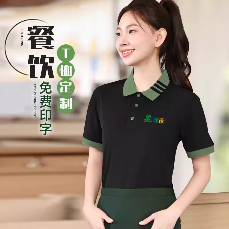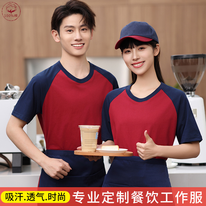 Baju kerja pelayan katering T-shirt lengan pendek musim panas restoran kantin hotel toko barbekyu supermarket baju kerja kasir