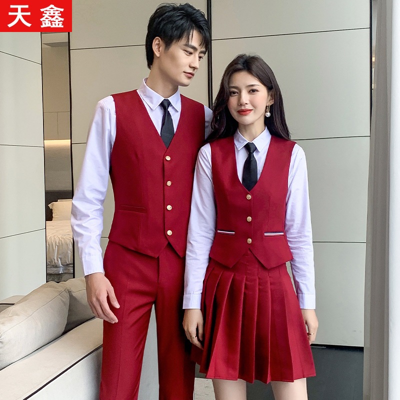 Setelan baju rompi pria dan wanita musim gugur tiga potong set hotel restoran restoran pelayan pakaian kerja rompi grosir