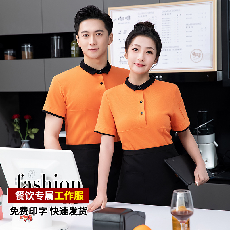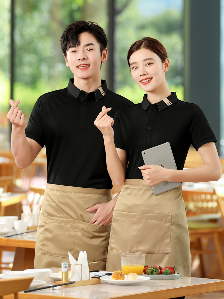 Pakaian kerja pelayan restoran kaus kerah lengan pendek pria dan wanita pot panas barbekyu pot panas teh susu pakaian kerja musim panas