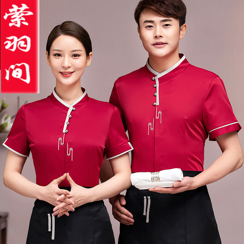 Pelayan baju kerja lengan pendek pria dan wanita hotel katering hot pot restoran gaya Cina rumah pertanian fashion pakaian kerja pakaian musim panas