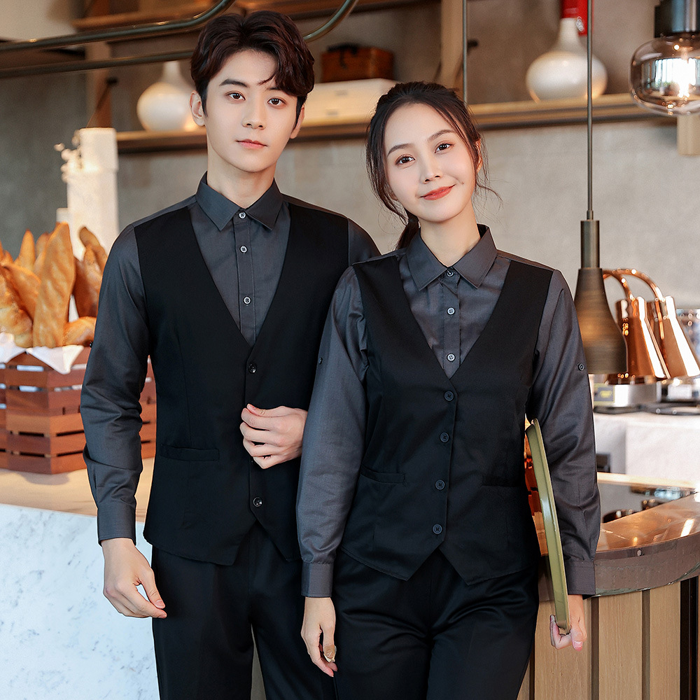 KTV teh susu restoran hot pot rompi minuman pelayan hotel pakaian kerja lengan panjang kopi Barat restoran pakaian musim semi dan musim panas untuk wanita