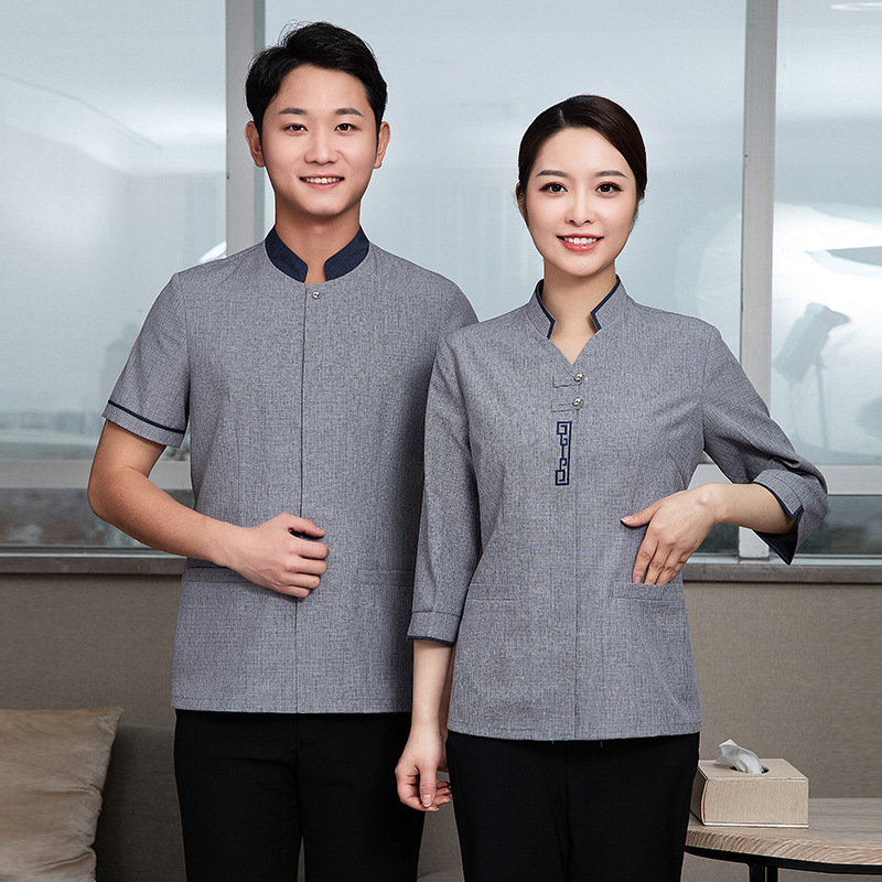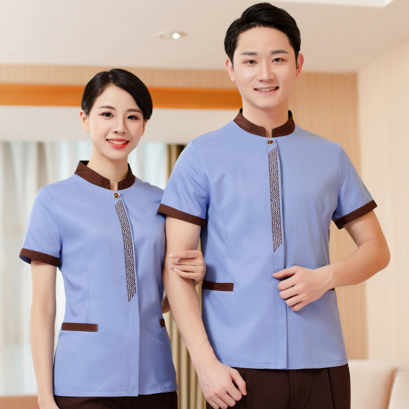 Hotel membersihkan pakaian kerja wanita lengan pendek musim semi dan musim panas properti hotel kamar petugas rumah tangga bibi pakaian musim panas