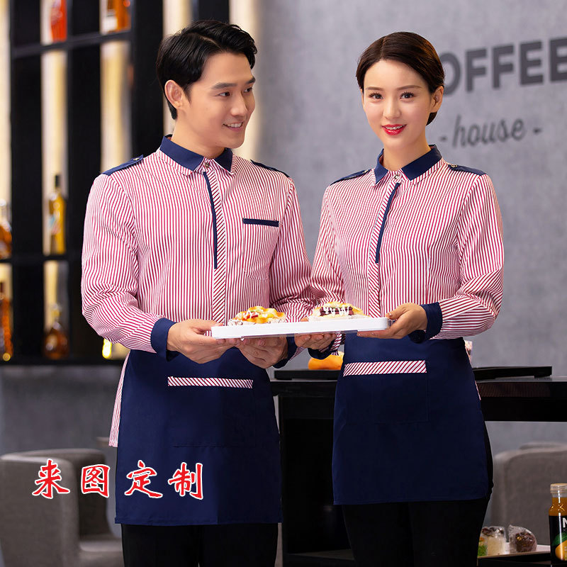 Pakaian kerja pelayan katering, baju kerja lengan panjang musim gugur dan musim dingin, baju restoran hotel pot panas restoran staf supermarket kaus