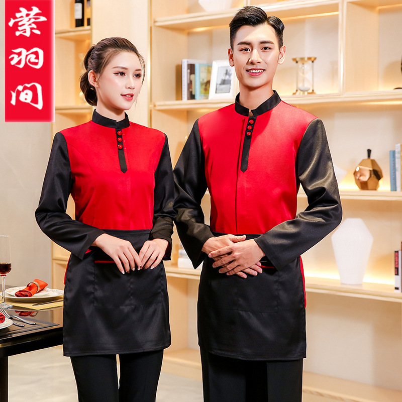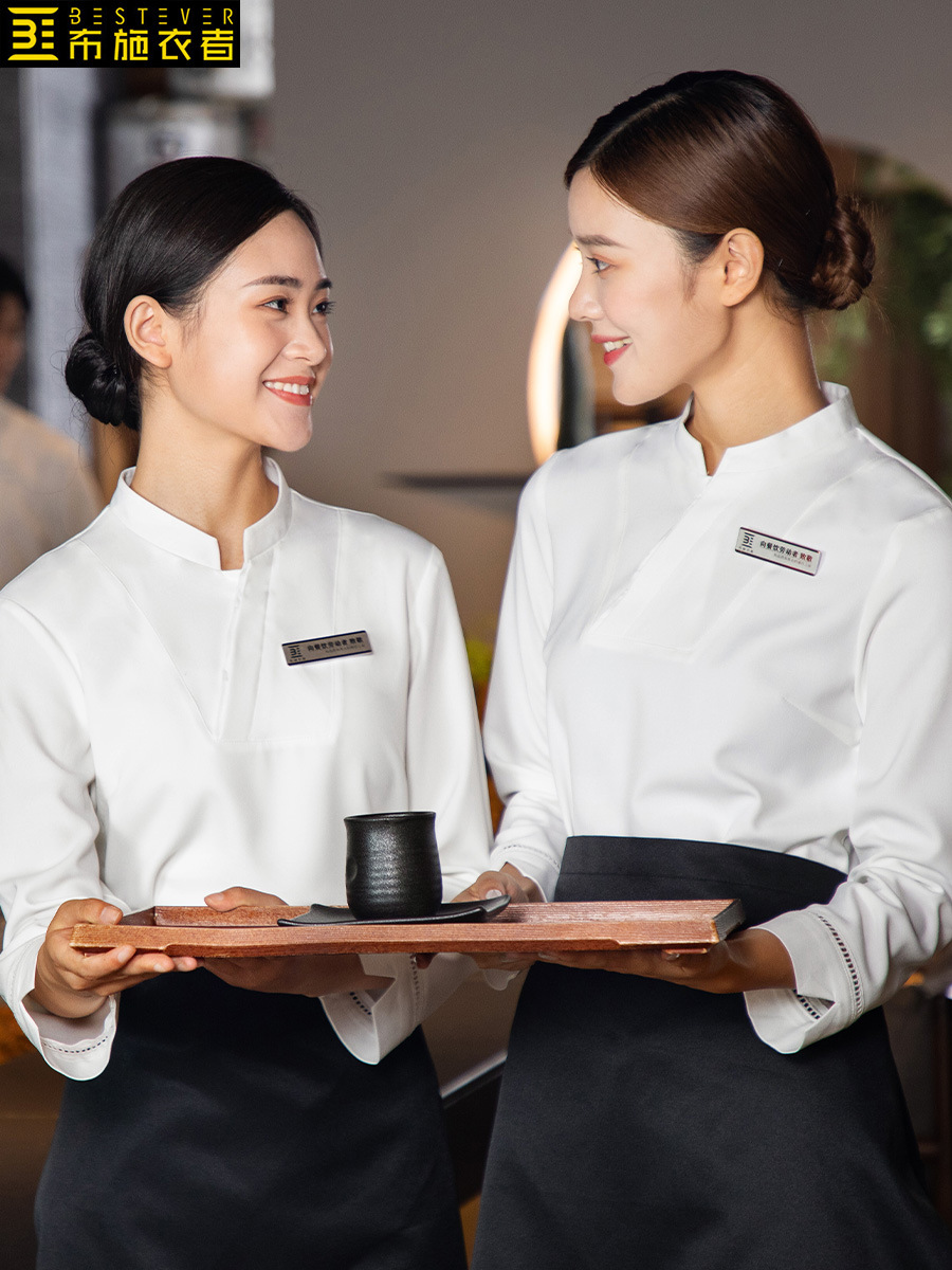 Baju kain restoran katering Cina, baju kerja Pelayan musim gugur dan musim dingin hot pot restoran lengan panjang setelan baru wanita