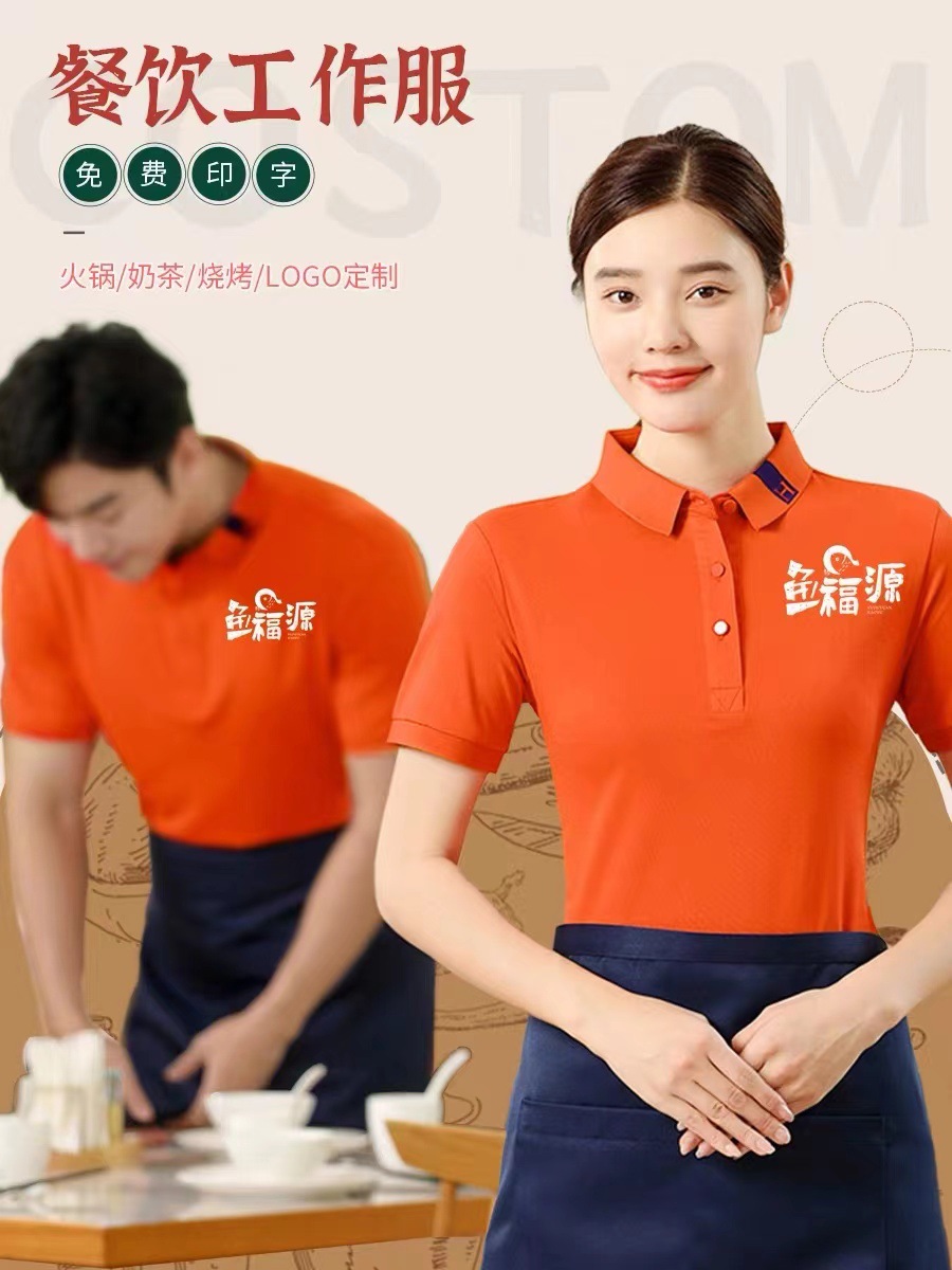 Workwear polo shirt katering pelayan, baju kerja lengan pendek musim panas restoran makanan barbekyu toko kasir logo cetak