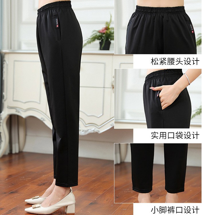 Celana kerja koki dapur Pria Wanita, bawahan elastis melar pinggang hitam longgar nyaman