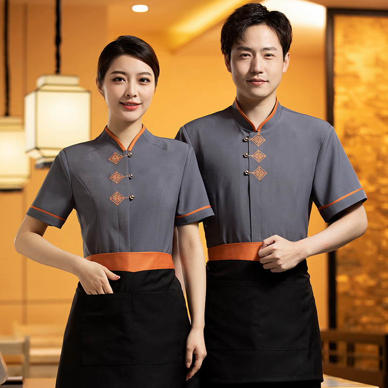 Pakaian Seragam Kerja Hotel Model Baru Musim Panas Pakaian Kerja Pelayan Restoran Kasur Uang Meja Makan Hotel Meja Makan Set Lengan Pendek