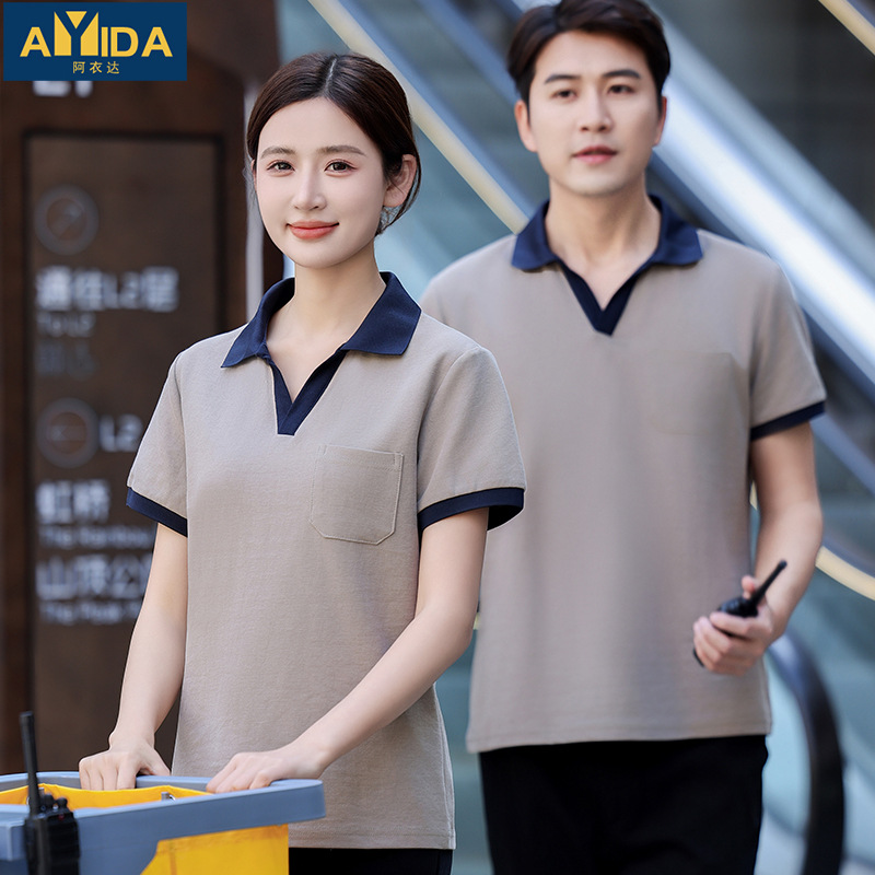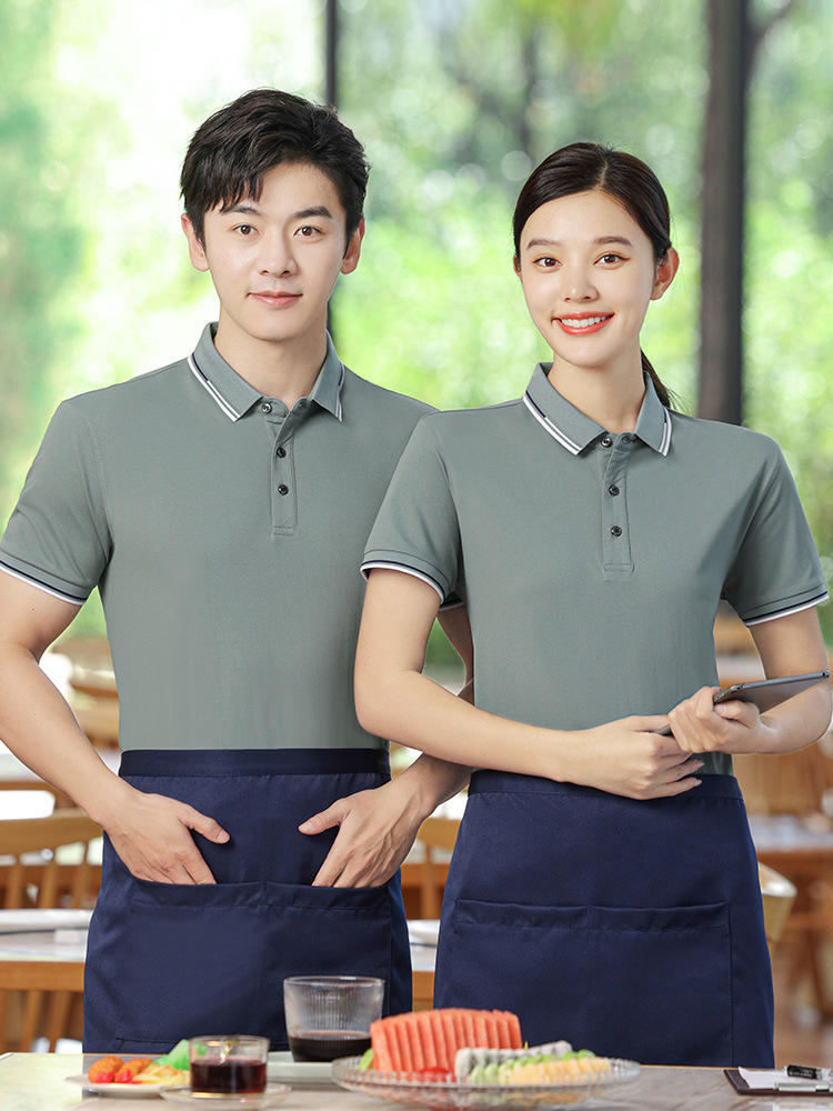 Baju kerja katering musim panas, baju kerja, kaus Polo pelayan restoran, pot panas, kaus lengan pendek