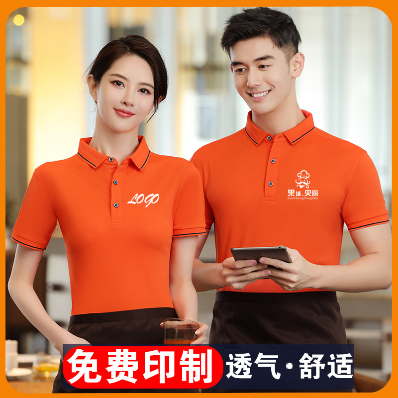 Pelayan pakaian kerja T-shirt disesuaikan logo Wanita hotel catering hot pot susu teh restoran supermarket lengan pendek cetak pria