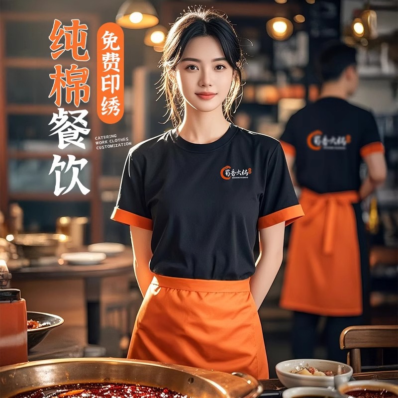 Pelayan pakaian kerja katering cetak lengan pendek musim panas barbekyu hot pot susu teh Restoran Makanan Cepat staf restoran pakaian kerja T-shirt