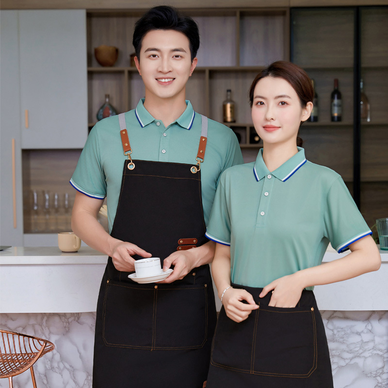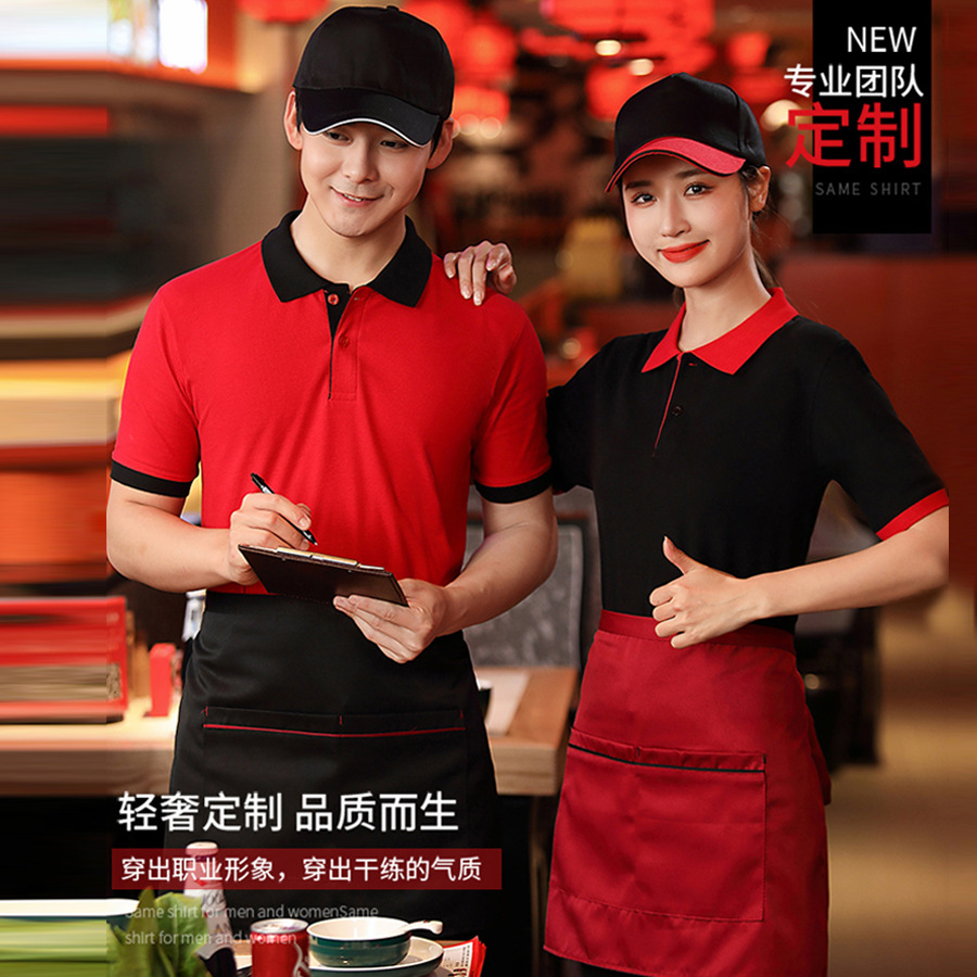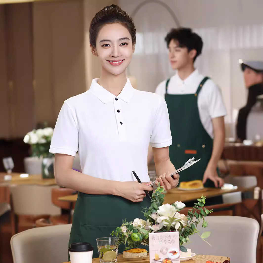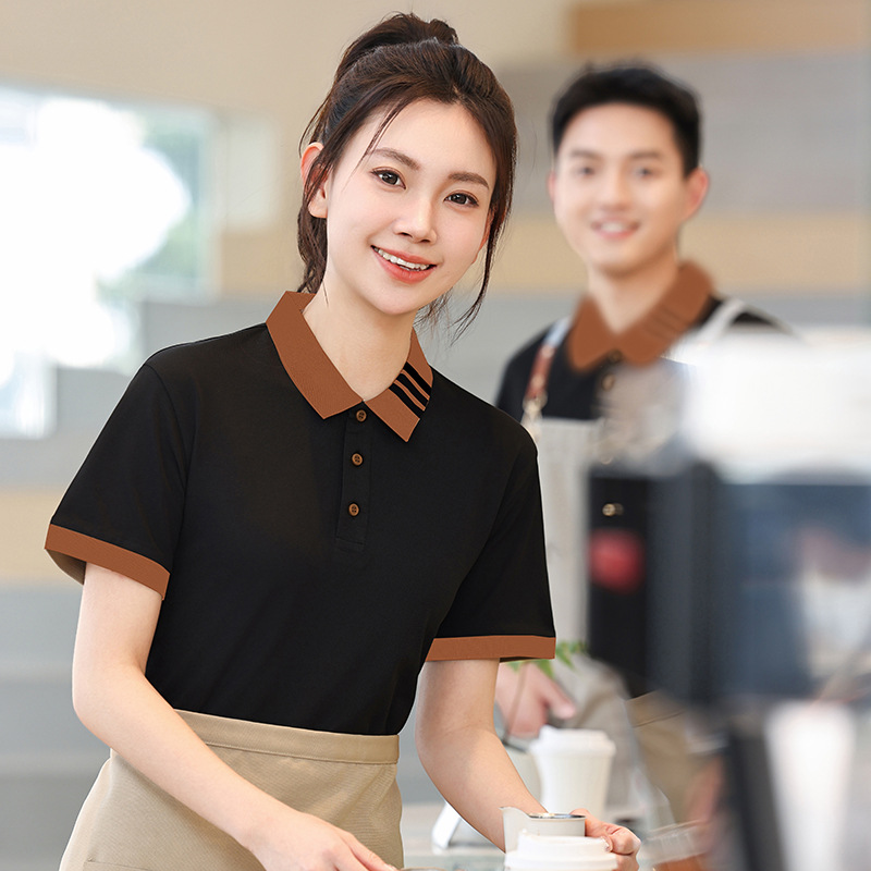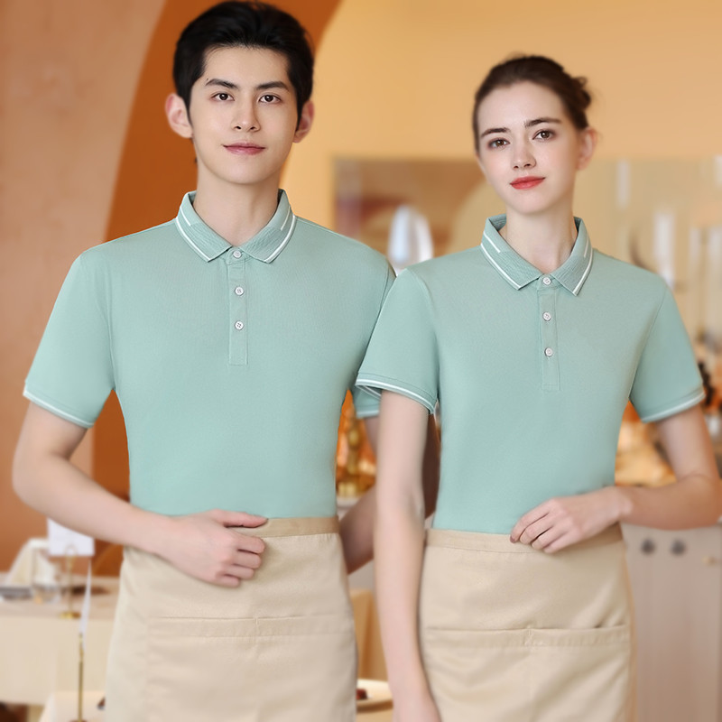 Pakaian Kerja Pelayan Musim Panas Lengan Pendek Baju Polo Kantin Kantin Teh Susu Toko Hot Pot Barbekyu Pakaian Kerja Cetak