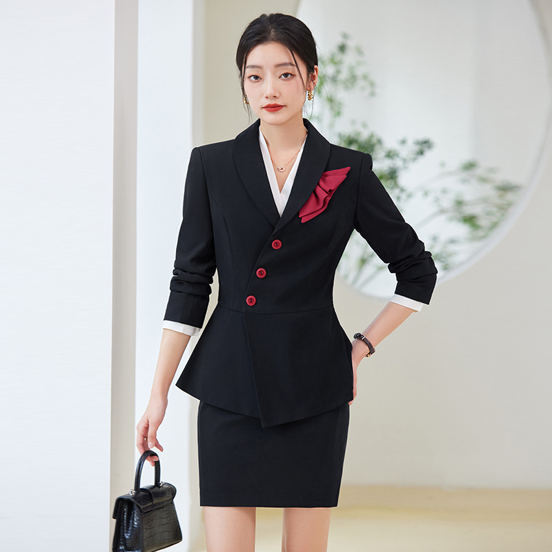 Setelan pakaian formal wanita, lengan panjang setelan profesional pakaian formal hotel musim semi dan musim gugur petugas meja depan mode wanita pakaian kerja