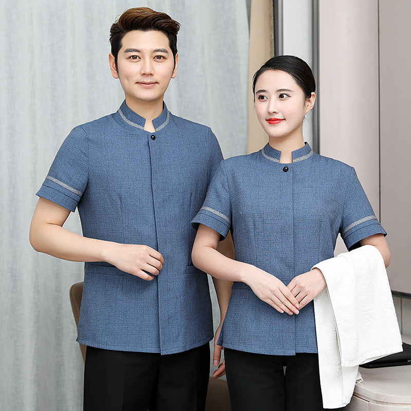 Pakaian kerja membersihkan, pakaian seragam pelayan kamar Hotel lengan pendek, pakaian kerja bibi pembersih unit properti musim panas