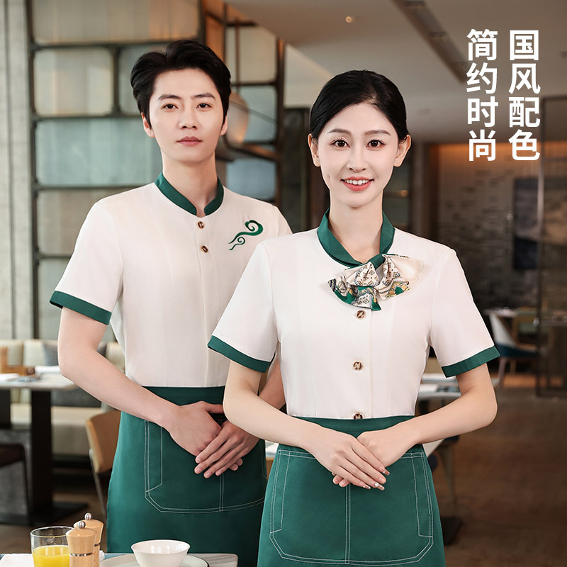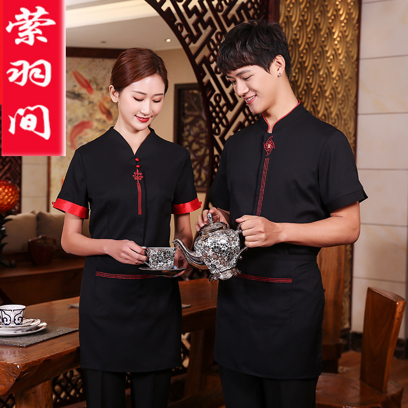 Pakaian Kerja Pelayan Hotel Kelas Atas Wanita Restoran Teh Gaya Tiongkok Jamuan Makan Hot Pot Hotel Pakaian Makan Musim Panas Lengan Pendek