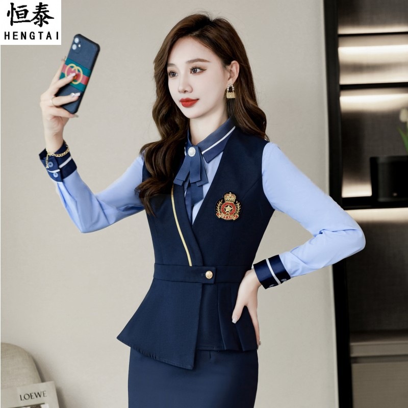 Musim semi dan musim gugur rompi profesional hotel wanita setelan meja depan pakaian kerja ahli kecantikan KTV pelayan mode pakaian kerja