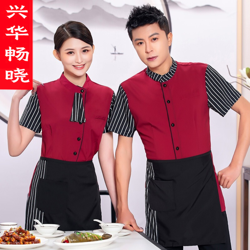 Baju kerja pelayan pria dan wanita, pakaian restoran restoran Cina untuk hotel katering baju kerja lengan pendek pot panas pakaian musim panas