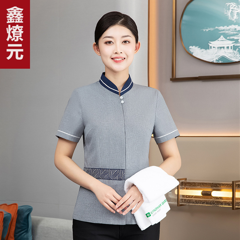 Pakaian kerja petugas Hotel musim panas pakaian hotel PA pakaian pembersih lengan pendek pakaian kerja seragam wanita pembersih Properti