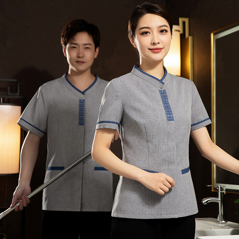 Pakaian pembersih lengan pendek, pakaian kerja petugas Hotel kamar mandi, musim semi dan musim panas, properti PA cleaner