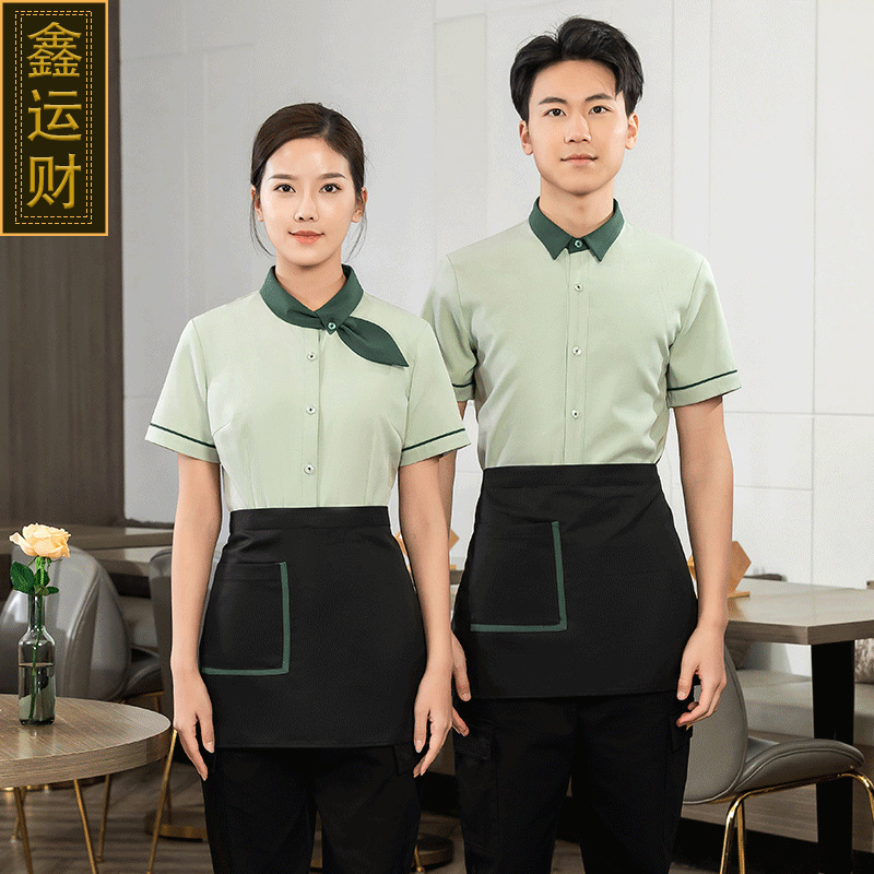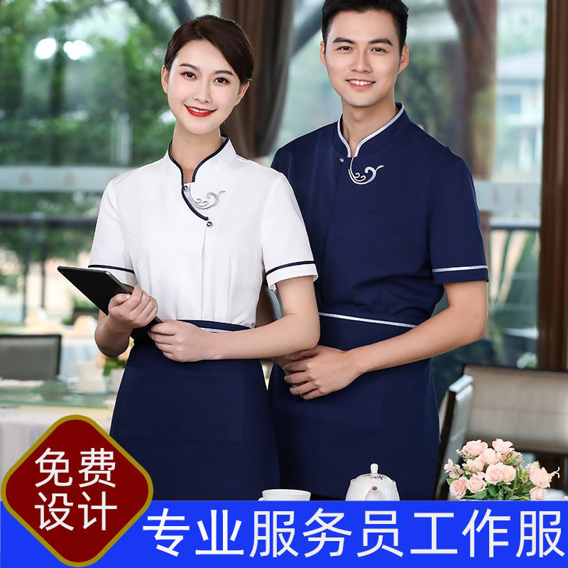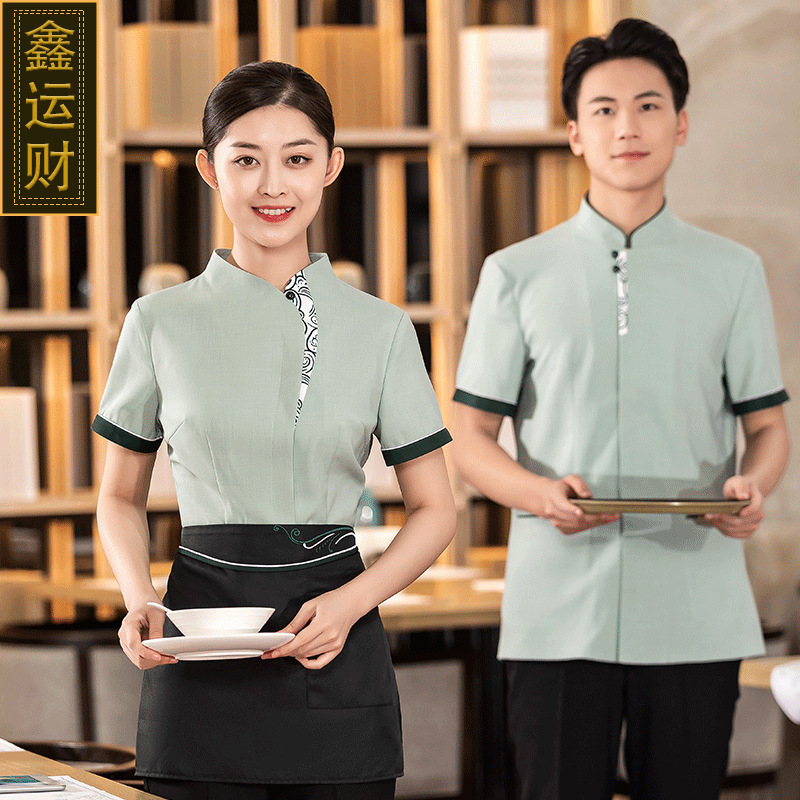 Pakaian kerja pelayan Tiongkok, baru, lengan pendek, restoran, pot panas, restoran, baju kerja staf transfer makanan, ruang jamuan, teh, restoran, pakaian kerja musim panas