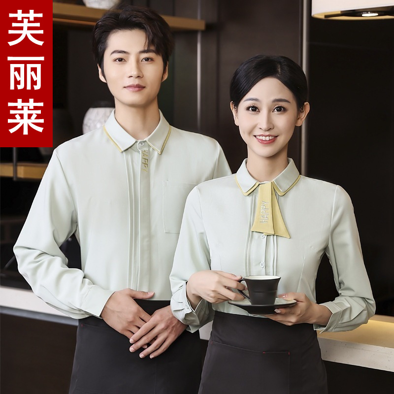 Seragam kerja pelayan katering, kemeja lengan panjang wanita, hotel, restoran hot pot, kedai teh susu, toko kue, pakaian musim gugur dan musim dingin, grosir kustom