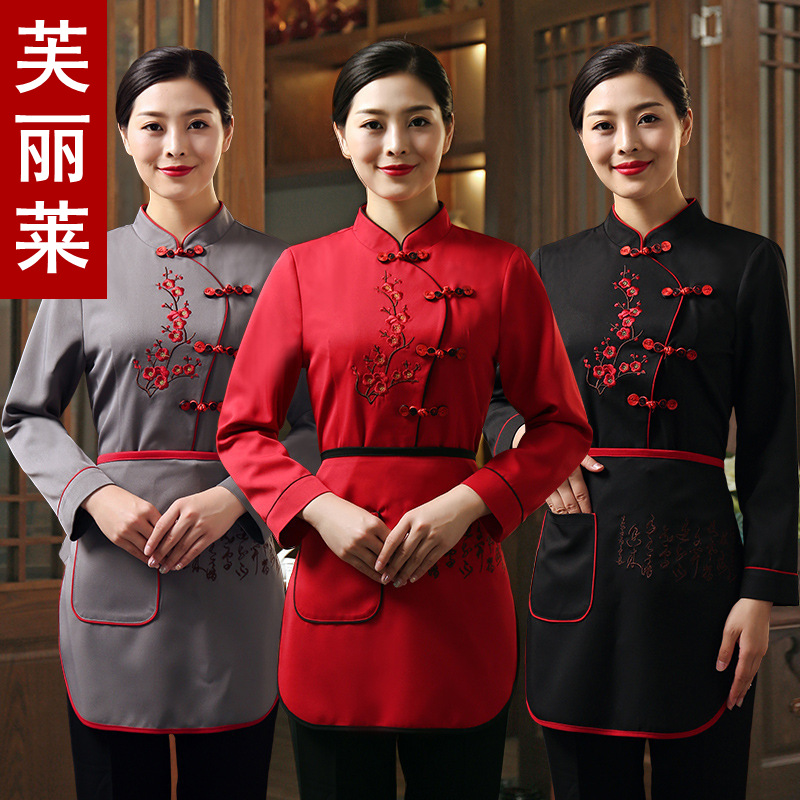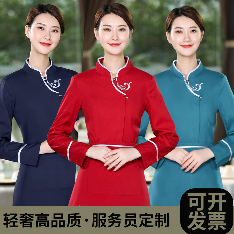 Baju kerja pelayan Hotel musim semi dan musim panas wanita, lengan panjang restoran restoran Cina katering pot panas restoran pakaian staf Tinggi