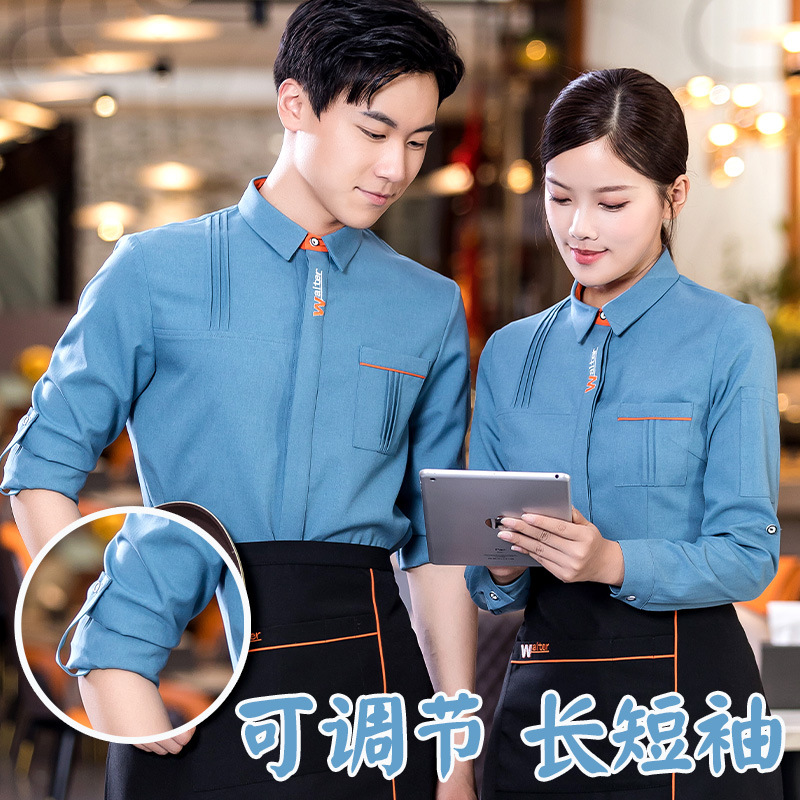 Toko teh susu restoran pelayan baju kerja lengan panjang Barat katering hot pot Shop depan meja kemeja lengan panjang pria dan wanita celemek musim gugur