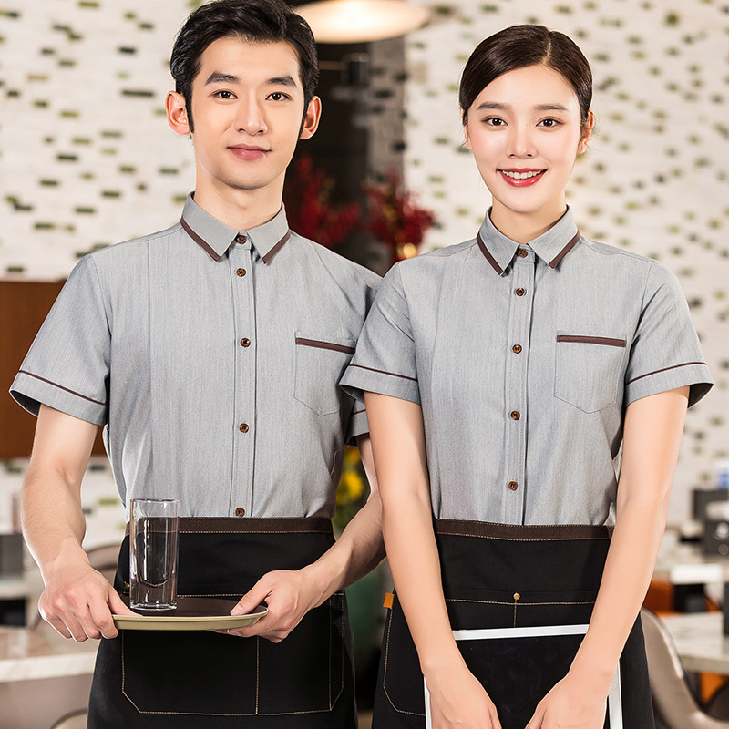 Baju kerja pelayan pria dan wanita, pakaian restoran restoran Cina untuk hotel katering baju kerja lengan pendek pot panas pakaian musim panas
