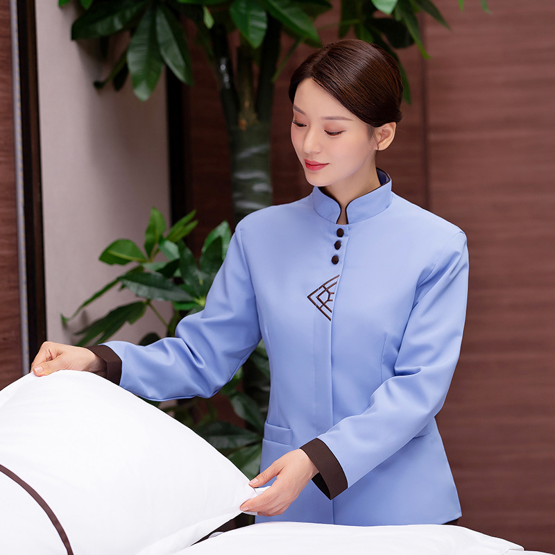 Pakaian lengan panjang untuk membersihkan kamar hotel pakaian kerja pakaian perempuan lengan panjang musim gugur dan musim dingin properti pembersih pelayan pria