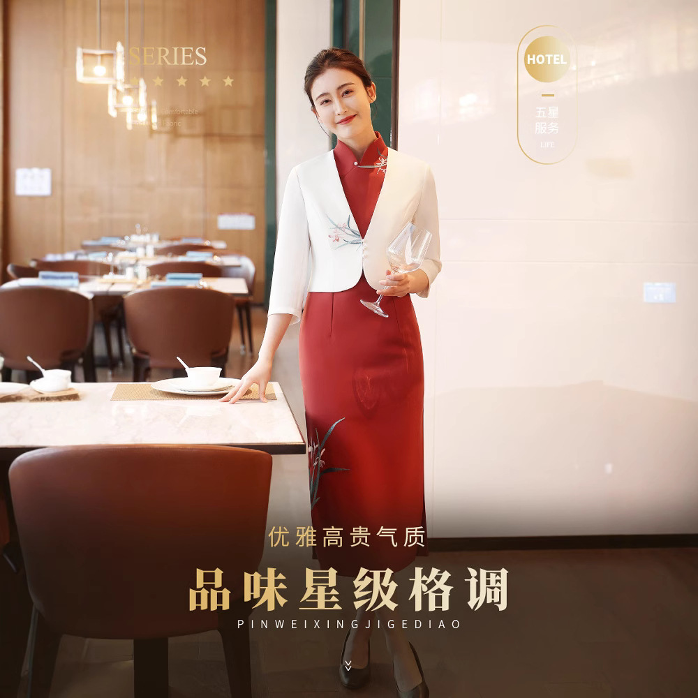 Pakaian Kerja Pelayan Hotel Bintang Jaket Cheongsam Restoran Kelas Atas Lengan Pendek Resepsionis Bisnis Musim Panas Kustom Wanita