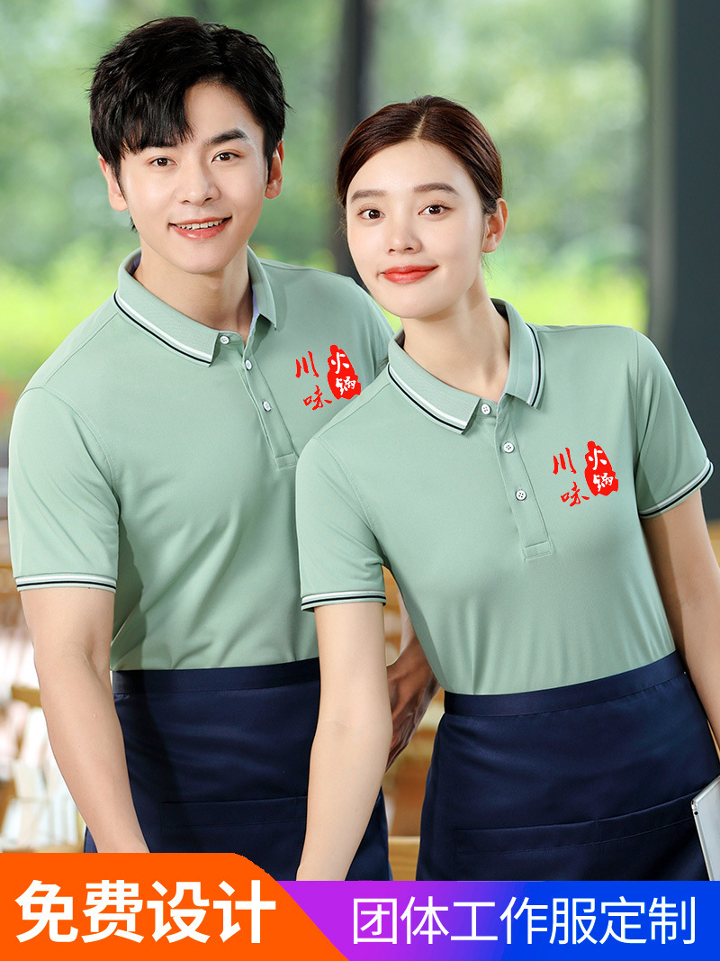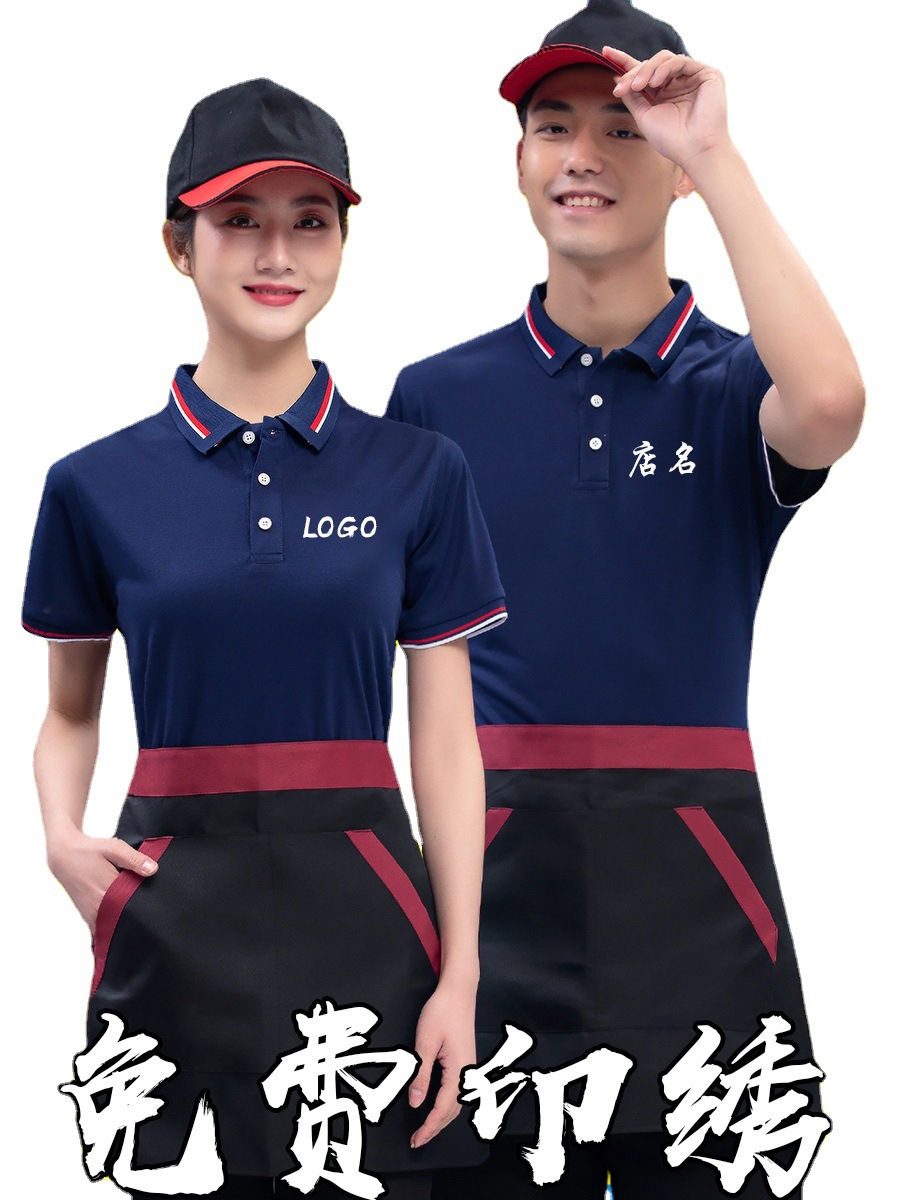 Baju kerja pelayan lengan pendek makan hotel restoran restoran nasi barbekyu hot pot restoran musim panas disesuaikan logo kaus