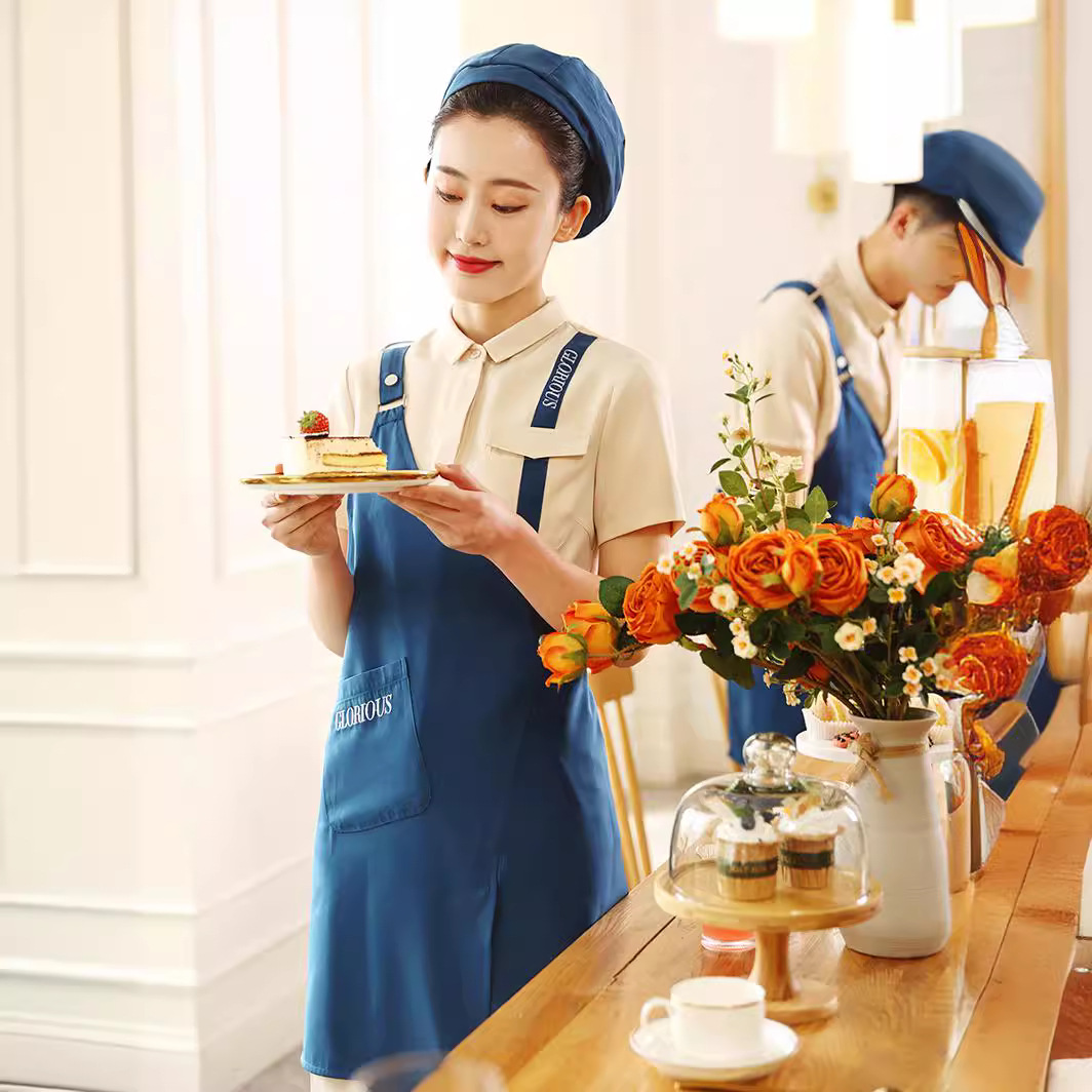 Baju kerja pelayan katering Hotel, setelan baju kerja lengan pendek teh susu musim panas restoran baju kerja