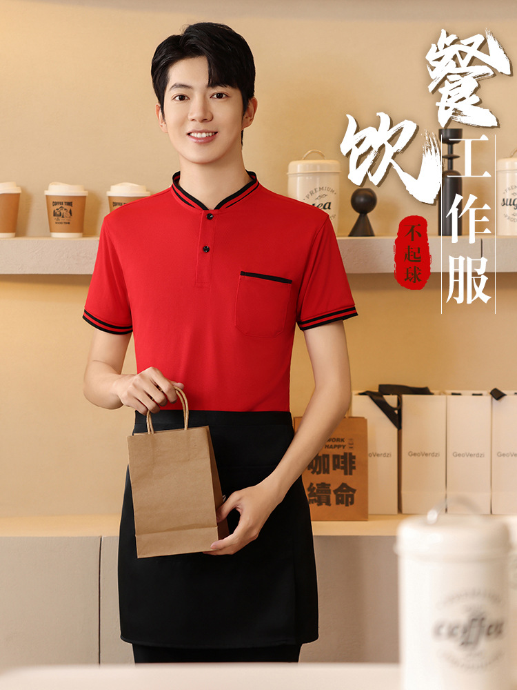 Baju kerja pelayan katering T-shirt lengan pendek restoran hotel restoran restoran pot panas Restoran kaus musim panas