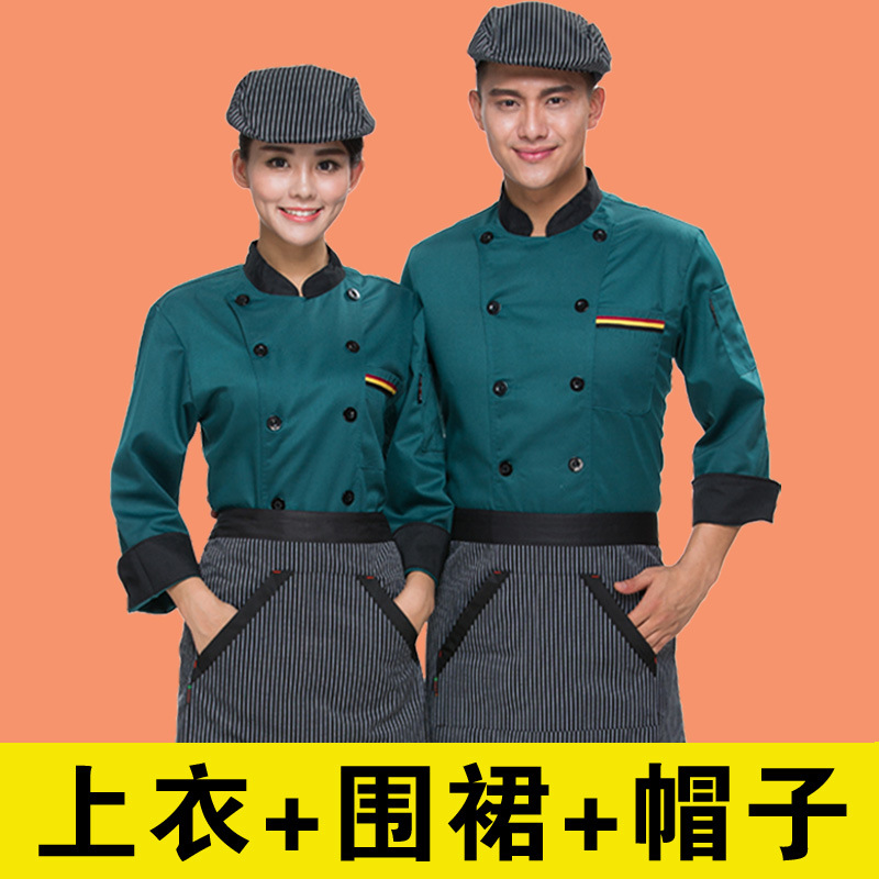 Baju kerja koki pria lengan panjang, setelan baju pelayan restoran restoran, panci panas, memanggang dapur, musim gugur dan musim dingin, pakaian kerja koki untuk pria